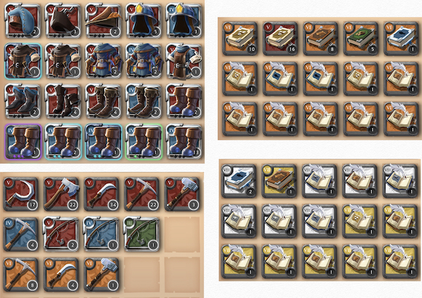 戰鬥裝備:通常學習點數強烈建議不要使用在戰鬥裝備上,因為戰鬥裝備可以從輕鬆殺怪與便宜的經驗書獲得,但是採集和製作提升的成本很高,並且採集和製作這是阿爾比恩穩定的賺錢方法,所以不想靠運氣刷寶等出貨賺錢的話,種田之外穩定賺錢的模式,就是有計畫地提升採集或製作的玩法。