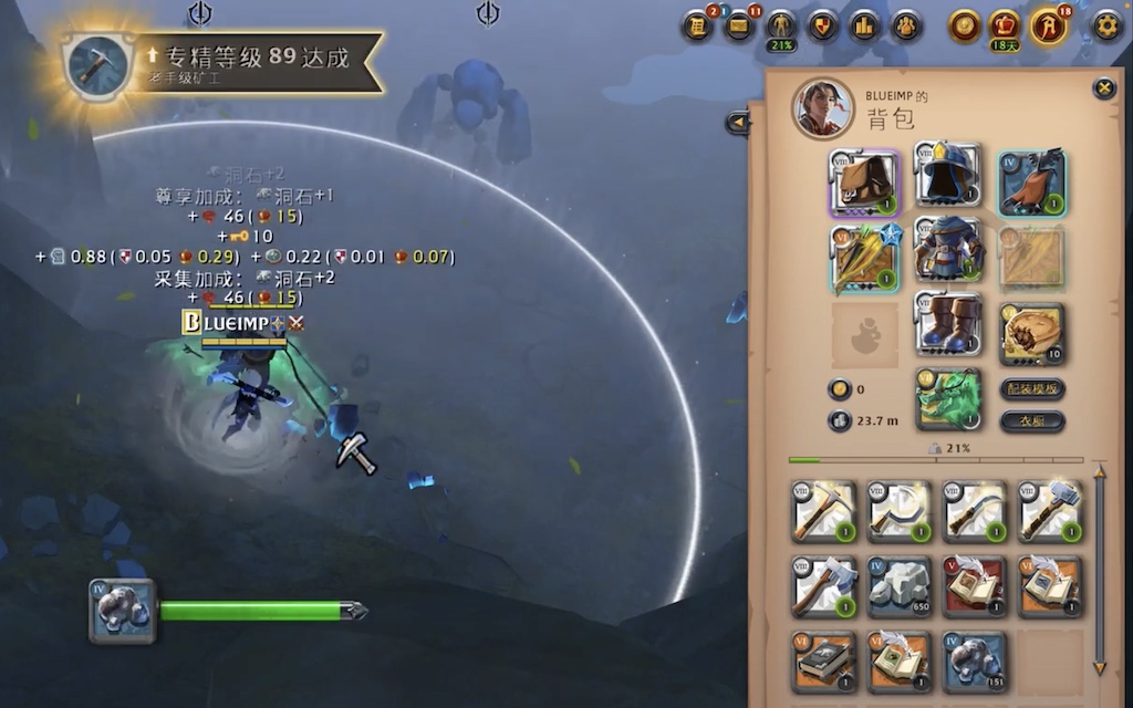 別小看採集仔的收入 當你練好練滿後 在我們家 SQ 裡挖一隻單劍 一分鐘左右就能挖滿一組 t4 礦石 如果這是遇到 4.3 的話 瞬間就是暴發戶!