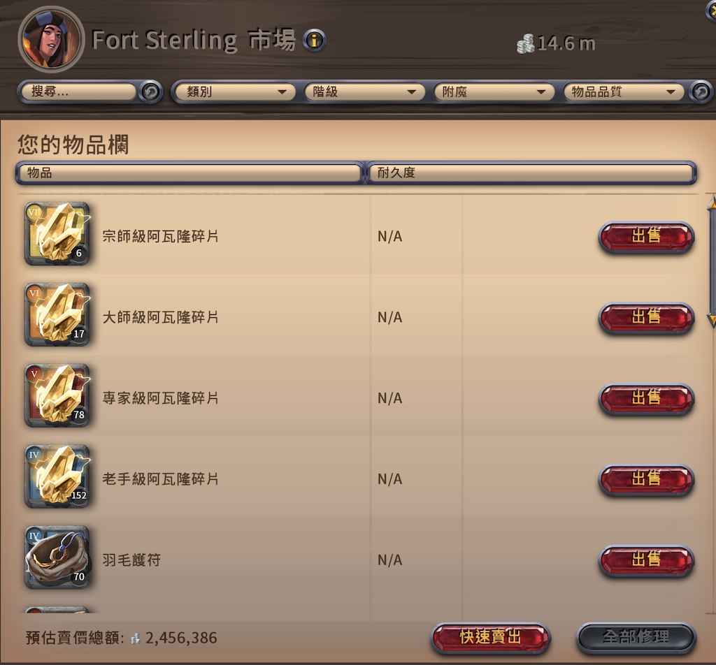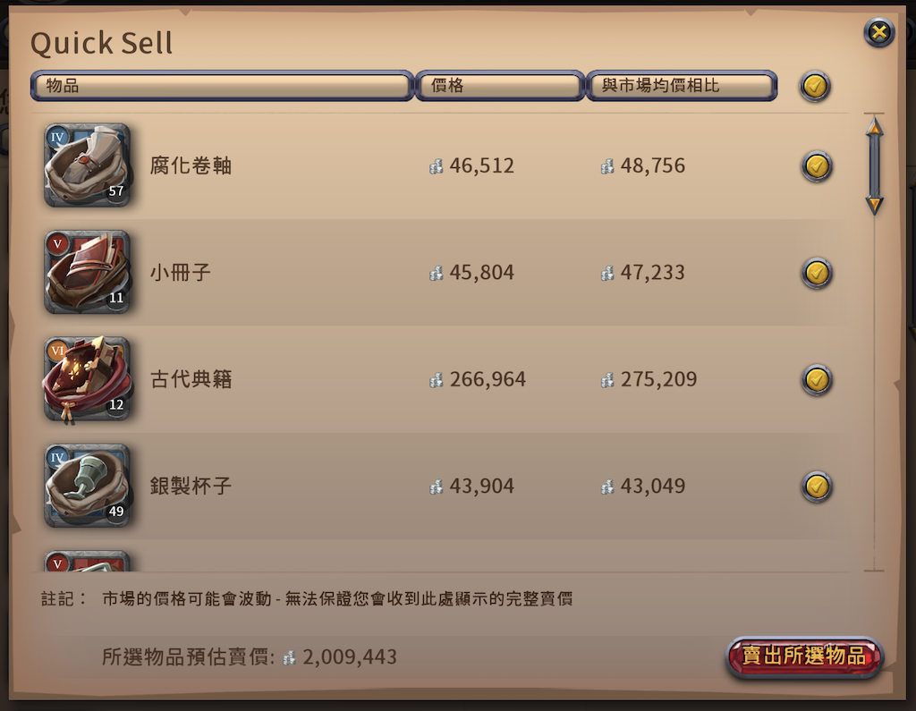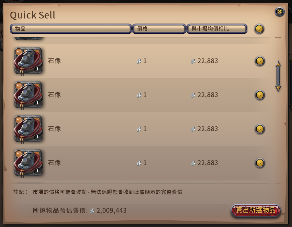 底下兩張是 hotfix3 還沒修正前的截圖 系統找出來的售價跟估價很接近 有些價格都還不錯 我賣了幾批挺爽的 但是!! 一天後該功能就暫時取消