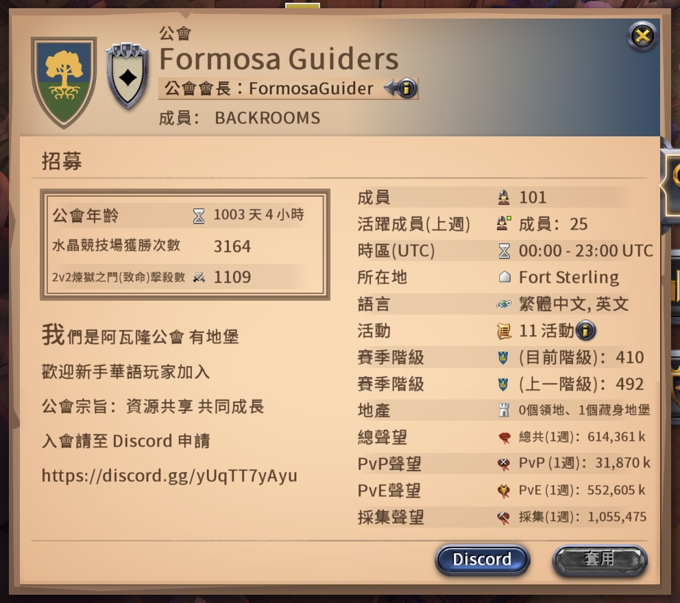 | 第五公會:貝殼鯨魚 shellWhale 即將啟動&聯盟移民政策v2.1聯盟成立已經滿 1,000 天,並且招募的人數留在聯盟各公會內合計也超過 1,000 人了,達成當時致敬 iYAYA 的雙公會目標 600 人! 當聽到老人們說「前朝」指的是 iYAYA 聯盟(由 Formosa Rangers 和 Formosa Hunters 兩公會為主再加上香港公會戰貓和其他外國公會),由於當時一統江湖的公會集體退遊(江湖傳言被官方河蟹解散)整個黑區大陸進入戰國時代,iYAYA 選擇獨戰群雄卻不怎麼順利,後來盟內主力幹部決定轉戰鬥公會方針但戰局仍每況愈下,奮戰後不敵其他聯盟合力圍剿守不住地盤,最終戰鬥成員決定另外成立新公會而把 iYAYA 保留給最後留下來的休閒玩家們繼續待著,而那時候剩下最有價值的就是咱這SQ阿瓦隆一座地堡。 經歷許多地堡存亡保衛戰,在 iYAYA 最後一任會長建議下我建立新聯盟 SRGT 並繼承SQ這張地圖,為求保住SQ這地盤的控制權決定了多公會經營的聯盟架構: *雙公會:在雙公會架構時期(FG HQ + BD lv3 HO)當時的主要目標是完成八個地堡的建立,能穩固抵禦入侵守住SQ這張地圖的主控權; *三公會:再來進入第三公會啟動(詳見聯盟第三公會架構啟動計畫),這時期的目標是養成多公會架構下的拉球互助文化; *四公會:在第四公會啟動後修改更完整的移民政策,而這階段的主要目標是地堡整體能量維護的穩定,並且提高SQ完全控制權的能力提早解除 FG 總部設定。 第五公會 shellWhale 將於 Formosa Overlord 超過 200 人後啟動,在 shellWhale 招募達到穩定水平後,整個SQ地堡能量維護將會更輕鬆囉! 2025-02-05:感謝 Saka 蛇年包給大家的紅包 88,888,888 感謝與捐贈,讓我們有額外的預算提早施行第三個 lv3 地堡的目標,基於以下幾點的評估... *首先是最新營運的公會新人,由於地堡資源的差異,都會希望移民到別的公會,特別是對於附魔的需求; *其次是SW的位置距離 FP&BD 都相當遠,所以不能像 FA&FO 一樣就近能安全附魔; *最後是SW左右兩邊的洞點是SQ相對最安全的,如果三門全開在SW設置復活點就能安心刷洞! SRGT - Backrooms 聯盟移民政策 v2.1*潤走:各公會外移的條件 . FG:無條件 . BD:公會人數不低於 100 人 . FA:公會人數不低於 130 人 . FO:公會人數不低於 150 人 . SW:公會人數不低於 180 人 *入籍:各公會轉入的條件 . 適用全公會:人數低於 280 人(保留 20 人的空間給公會調配用) . Formosa Guiders:別讓三姑六婆不高興! . BLUEDEER >畢業:需完成新生訓練流程; >稅收:於公會累積稅收貢獻需超過 1m; >職務:S28起 必須取得「拉球達人」職務! . Formosa Adamas >聲望:總聲望需超過 100m; >起肖:需要能一鍵換裝穿上蒼蠅仔的拉球裝&起肖防裝,並且公會模板所設定的技能均會施放。(著裝後將武器點開截取包含角色ID的圖私訊給會長) . Formosa Overlord >起肖:條件與 FA 相同。 ----------------------------------------  截圖 2025-01-26 22.07.49.jpg