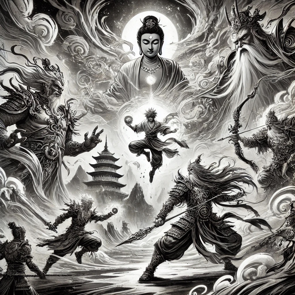 角色有:孫悟空、楊戩、如來佛和天神四大天王