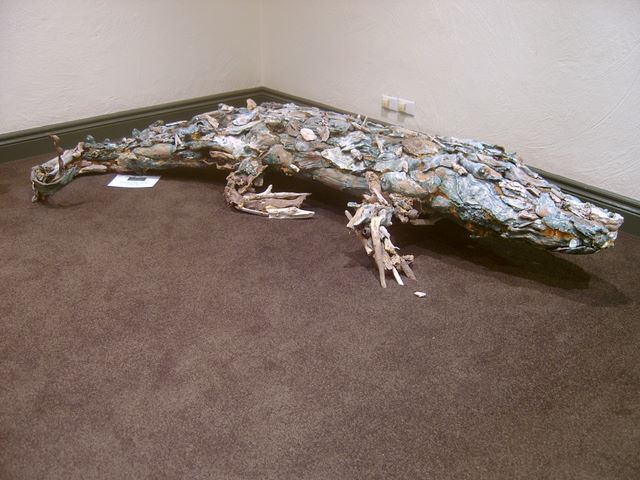像這隻鱷魚 就是利用許多掉落的碎木片拼湊而成的 一點也不浪費資源 又能創造藝術