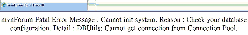 Re: 架站問題Dear 小惡魔,小弟又來麻煩您了… 先簡單說明一下我的環境, 系統版本: XP Professional Version 2002 Service Pack 2 tomcat版本: Apache Tomcat 5.0.28 Server MySQL: mysql-5.1.22-rc-win32.exe JDBC驅動版本:mysql-connector-java-5.0.3-bin.jar 小弟有將error msg抓下來卻不知該如何從此上傳 內容大約是: 網址列打入: http://127.0.0.1:8080/mvnforum/mvnforum/index 後 出現下方文字: mvnForum Fatal Error Message : Cannot init system. Reason : Check your database configuration. Detail : DBUtils: Cannot get connection from Connection Pool. 小弟也在請教了自己同事有提醒小弟說要去設定url,username,password… 可是小弟在研究了mvnforum.xml及mvncore.xml後還是不知道該改哪些東西,目前小弟僅在mvnforum.xml中改了應該是論壇預設語言的部分:en -> zn-Tw。 其他小弟都不敢擅自做修改,深怕一個動作造成無止盡的錯誤。 煩請小惡魔有空時幫小弟解決問題,感激不盡!! ![]() ---------------------------------------- ---------------------------------------- [編輯文章 1 次, 最後修改: totology 於 2007/11/8 下午 02:51:20] |