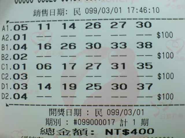 Re: 威力彩中獎了!雖然很不想現在破功講出來..怕講出來就沒下次了但這次其實是小胖妹以前寫的樂透程式跑出來數字 真的給她中了!! 看來小胖妹要把JB裝一裝 & 好好的改良改良那支程式 |