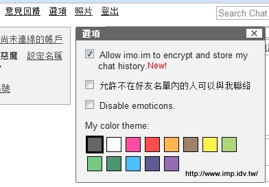 WEB 即時通整合網站支援MSN, Yahoo, Google, Skype, Facebook, ICQ...freeware, IM, 即時通, MSN, Yahoo, Google, Skype, Facebook, ICQ...https://imo.im/ 點過去後記得回來看完以下的說明,教你怎麼取消網站保存你的秘密... 就是這個網站,免註冊跨平台的綠色軟體,忍不住要給他讚很多! ![]() 如果你害怕英文的話,就先點下面那個〝正體中文(繁體)(82%)〞... 如果你登入第二個以上的即時通帳號,他會建議你連結帳號,這時候會把帳號密碼儲存在網站上,如果不放心的話想清楚再按! ![]() 如果你不小心連結了呢?那就點一下那個〝尚未連線的帳戶〞 =..= 不要笑!不知道是哪個白癡建議的翻譯... 原文是 unlink account 應該翻譯成〝解除帳戶連結〞比較適當...... ![]() 另外務必要注意的一件很不人道的事情,就是這個網站 default 會把你的通話記錄保存在網站上,所以如果你登入後,建議進入選項把它打勾取消掉! ![]() 不過現在重頭戲來了... 如果你剛好是 Chrome 的愛用者的話現在推出擴充套件,可以讓你有音效通知和桌面提示通知,這樣的確方便多了! google 網站安裝擴充套件 Chrome 擴充套件安裝說明請看 重灌狂人 http://briian.com/?p=7028 http://blueimp.pixnet.net/blog/post/7470803 ---------------------------------------- 支持小惡魔 BTC : 19tn3RnCuwZVukXAwyhDWZD4uBgUZoGJPx LTC : LTFa17pSvvoe3aU5jbmfcmEpo1xuGa9XeA 知識跟八卦一樣,越多人知道越有價值;知識最好的備份方法,散播! 藍色小惡魔(林永傑): 臉書 ---------------------------------------- [編輯文章 8 次, 最後修改: jieh 於 2013/7/22 下午 09:55:49] |