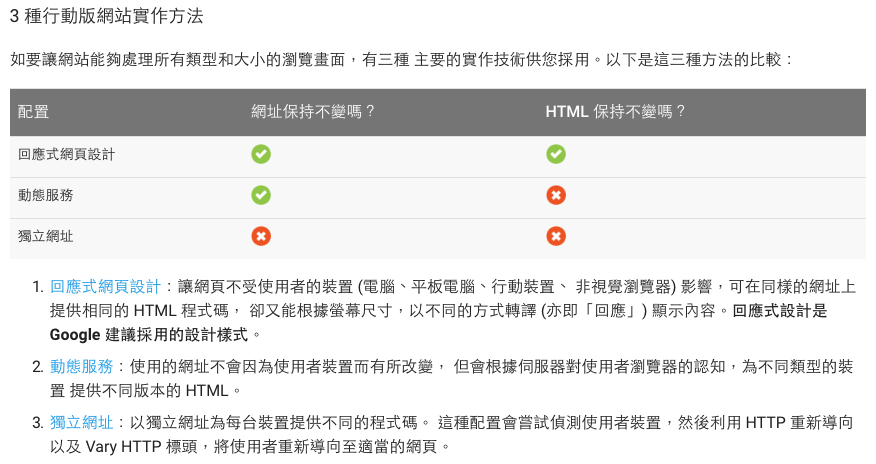 看一看這個表的結論是:回應式設計是 Google 建議採用的設計樣式。 我馬知道...只是我這個 mvnForum 古老的版本哪懂這東西勒!不過上面這個表看起來有密技的樣子,意思是選擇這個方式「網址保持不變」以及「HTML 保持不變」... 這是 RWD 的特色,不過 Google 這張表看起來的意思是,選擇 RWD 的話可以讓小惡魔的老網站保持網址不變,而且也不要去改 HTML...耶!? 後面的過程就簡單帶過,總之,順這 Google 的指引,意思就是在 head tag 之間加入以下 meta tag 內容就好了! <meta name="viewport" content="width=device-width, initial-scale=1.0"> ㄜ...小惡魔半信半疑地加上去之後,再測試一遍...哇哩勒~~過了!