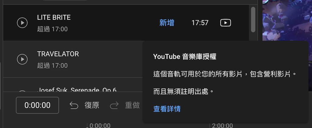 附加檔案 5981_YT音樂庫授權.png (130247 bytes) (下載次數: 4095) (YouTube 工作室:音樂庫授權)