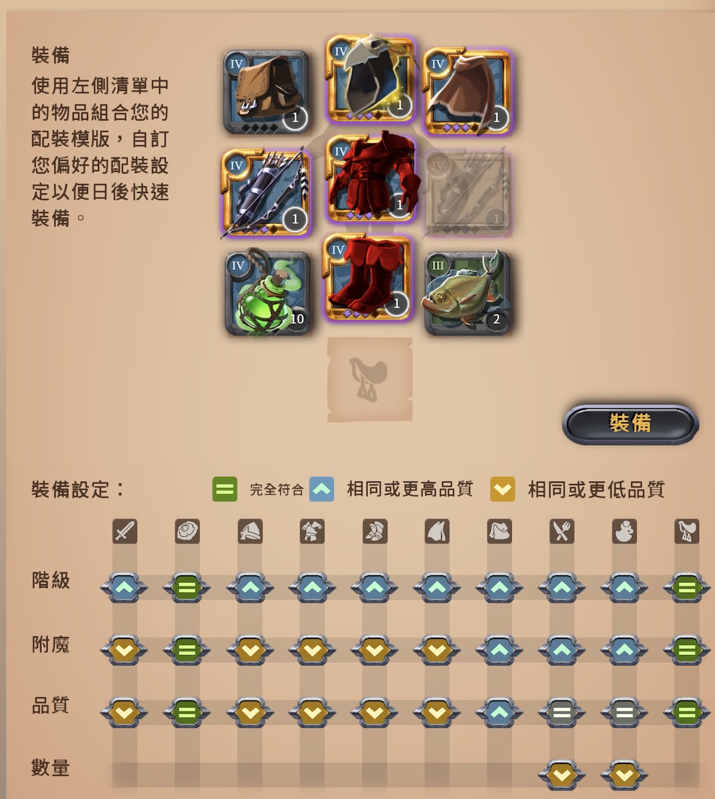 | SRGT SQ藍洞配裝&公會裝備租用福利公會公告DC頻道:農糞健身房 2025-08-19:先設計長弓新手包公會模板「藍洞:新手包 v0.1」(佈置在SW)進行討論交流 藍洞:新手包 v0.1 首先,先感謝 隨風 和 阿楊 提供新手包點子和配置建議,不過忘了先回應你們,在收到點子時我的筆記就打算以「喝湯跳怪」配裝為基底進行設計,浪費了你們一點時間,不好意思呀... 藍洞新手入門長弓跟團包模板說明: *免費福利:領裝後免歸還; *技能說明: *>弓箭 - 初期考量練度技能配置為 Q2, W2, P2,在弓箭等級提升到 lv40 後還在用新手包弓箭,那可以改為 W3 在缺血時可以開 R3+W3 先自己吸幾口。 *>鳥頭 - 建議在每波怪打完移動時開鞋F3跑到隊伍前方後放下回魔池讓缺魔的隊友經過時駐足;不過開團小隊長有不同的要求時,配合當下團隊的節奏即可,忽略公會建議; *>衣服 - R3吸血技能,自己缺血自己補減少補師壓力。 *防具調整:如果自己有其他防具裝備想練,或者有熟練度可以自己調整,不一定限制只能套用公會模板,但是如果是以新手狀態加入武器基本不變。 配裝概念說明: *公會設計藍洞新手包的目的是想讓大家更願意接納新手入隊,不用再擔心新手想加入時拖延出發時間,當下就直接用公會模板領裝後就出發,第一次出團讓他隨意模索就好,並提醒他活動結束後要上公會網站閱讀這篇教學文,主要看完技能說明即可,其他內容有興趣再看。 *藍洞新手入門長弓跟團包準備將會以 4.2 為主即可,是以「喝湯跳怪裝」為基底。 *新手第一次跟團結束後如果對藍洞有興趣,務必認真做點功課,例如對本文其他位置的配裝進行研究和找人詢問,這樣才能成為人見人愛的好隊友。 以下施工中... 感謝 FO-張大孟_marsJMK 費心整理 下面是我找大家陪我打藍洞時的配置 還是會依個別狀況彈性調整~提供給大家參考 *坦克:夢魘槌杖、任意盾、刺客頭(CD頭)、任意鎧甲、任意鎧鞋、藍城披風orAvalonian披風、牛肉三明治 *神聖補:任意神聖杖、守墓者頭盔(犧牲頭)、任意布甲、任意鞋、綠城披風、豬肉雞蛋餅 *固定輸出1:巴頓之弓、德魯伊帽(鳥頭)、皇家外套(CD衣)、任意鞋、摩根娜披風、豬肉雞蛋餅or燉牛肉 *固定輸出2:灼燒法杖(火龍捲)、刺客頭(CD頭)、皇家長袍(小紅衣)、任意鞋、綠城披風、豬肉雞蛋餅or燉牛肉 *彈性輸出1:破界者(裂域斧)、刺客頭(CD頭)or德魯伊帽(鳥頭)、潛行者外套(電衣)or幽靈外套(火衣)、任意鞋、綠城披風orAvalonian披風、烤豬肉or燉牛肉 *彈性輸出2:墓槌、任意頭、潛行者外套(電衣)or幽靈外套(火衣)、任意鞋、綠城披風orAvalonian披風、烤豬肉or燉牛肉 *彈性輸出3:十字弓、地窖燭光(螢燭)、德魯伊帽(鳥頭)、德魯伊長袍、任意鞋、綠城披風orAvalonian披風、豬肉雞蛋餅or燉牛肉 *彈性輸出4:長弓、任意頭、德魯伊長袍、任意鞋、綠城披風、燉牛肉 *彈性輸出5:穿霧者(破霧)、刺客頭(CD頭)、德魯伊長袍、任意鞋、綠城披風、豬肉雞蛋餅or燉牛肉 *彈性輸出6:獵魂者、刺客頭(CD頭)、潛行者外套(電衣)or幽靈外套(火衣)、任意鞋、綠城披風orAvalonian披風、烤豬肉or燉牛肉 *彈性輸出7:任意冰杖(綁定Q2、W5)、任意頭、學者長袍(學士衣)、任意鞋、綠城披風、豬肉雞蛋餅or燉牛肉 *彈性輸出8:任意詛咒、任意頭、任意布甲、任意鞋、綠城披風、豬肉雞蛋餅or燉牛肉 隨風還有整理一個檔案 比較偏向速刷 綜合意見 我會朝向分類更細化的方向規劃 例如開團先知道這次刷洞的打法或目的 例如 速刷團、刷寶團、練功團或者混搭團...等 然後再參考公會的配置整裝和租借裝備 先構思一下如何規劃: *裝備初期會建置在 BD 但未來第二階段會陸續向以下地堡也都部署:FO, SW, FA 其他地堡待後續觀察和建議再做評估 *裝備可不必修理就交回 給新手經濟做點資助 只是箱子不能修裝 而用公會倉庫又太大... 所以後續修裝維護可能會遇到我沒能即使處理的問題 怎麼兼顧還在思考中 **初步想法是多放幾件作為緩衝 *權限的方面會開放給防衛兵以上的職務 後續會視情況規劃專屬職務授權使用 初期就麻煩幾位幹部幫忙 **考慮可能還是會有折損 以及 防止惡意竊裝可能 所以會在旁邊設置備存倉庫(同新人房的採集裝規劃概念) *參考 喝湯 權限管理&回收箱機制 或 HCE分級 機制...等 *或者 43 基本上可以透過 BD03 來進行 然後回收也丟入BD03即可 而 更高等級的裝備再拉出來設置 *箱子內也會提供毒藥和食物(阿虎之前捐的還有很多沒發放)、t3, t5 阿瓦隆魚補血量讓新手多點容錯 *會放點經驗書 剛剛抓了一隻新的小號測試 穿著 t2 只要吃「t4經驗書x4」就能穿t4(後續請大家再幫忙 double check)不過經驗書現在沒開防衛 後續公會沒很多機會補充 所以希望刷藍洞的愛好者們 可以隨喜捐助補充福利 *協助出借裝備的幹部 不要直接交易! 屆時我會指定一個箱子(禮物盒)存取 這樣可以在箱子內留下log 也方便後續進行裝備歸還的追蹤 *經驗書考慮規劃在「新人房」不過捐書的地方會公告放入 BD08 我會轉移到最後決定放書的地方 裝備部署清單先休息XD 待續... v0.4.0038 因為裝備比較複雜 所以我會先設置好經驗書的部分 如之前規劃 權限的層級會暫定在防衛兵職務 所以經驗書會放置在BD03 有權限的人可以協助新人取用 *弓箭吃書包模板 **弓箭吃書包模板 以喝湯跳怪裝為基底設計 順便宣傳喝湯團 都要農糞了 經驗湯吧福是一定要的(t2, t4 各一套&t4經驗書x8