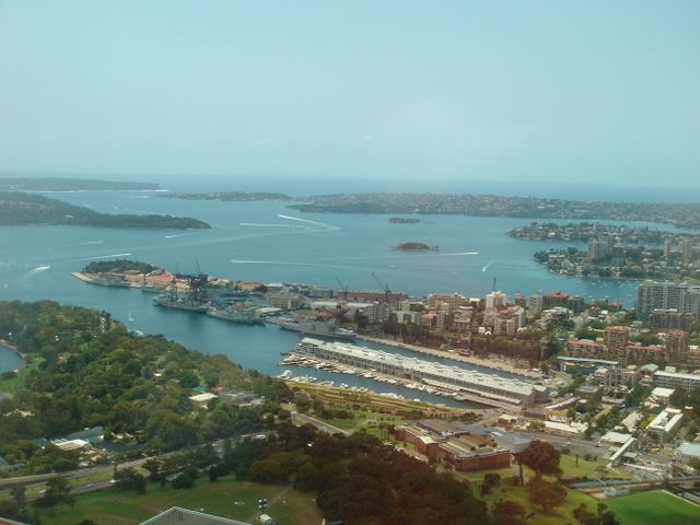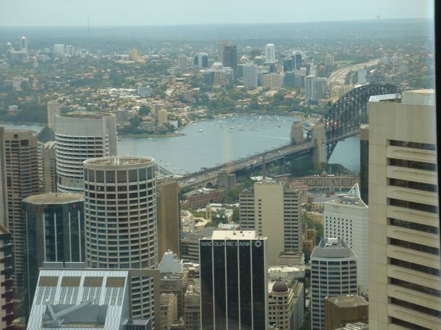 再見雪梨橋 這次從 雪梨塔 俯瞰 雪梨橋 橋下水面上 遊船四竄 好熱鬧...